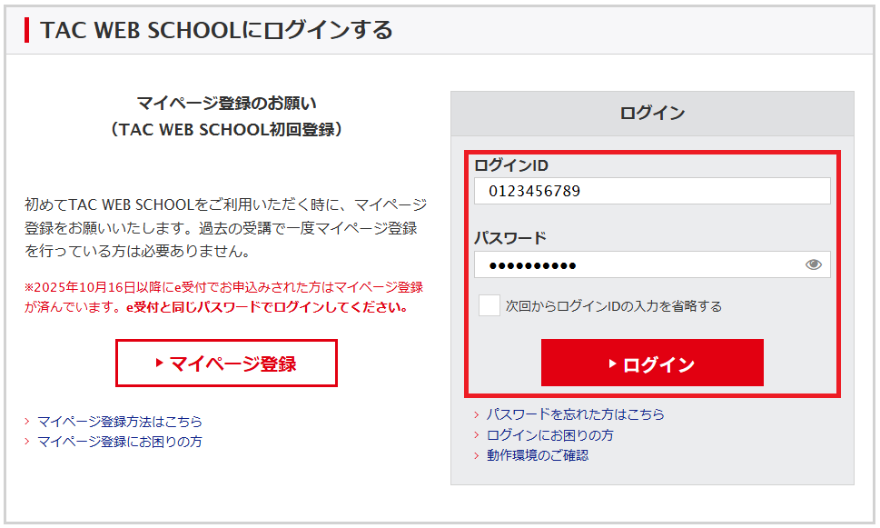 ※TAC WEB SCHOOLの ログインページはこちら 。