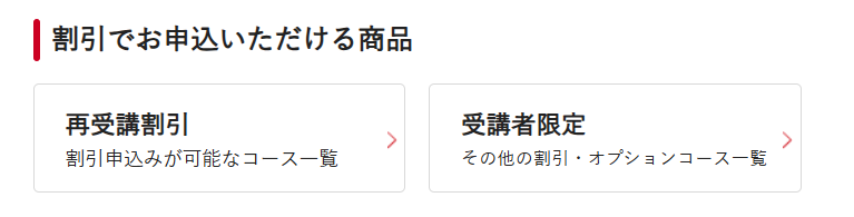 ※本科生割引、受験経験者割引、他資格合格者割引は、一部の講座でご利用いただけます。